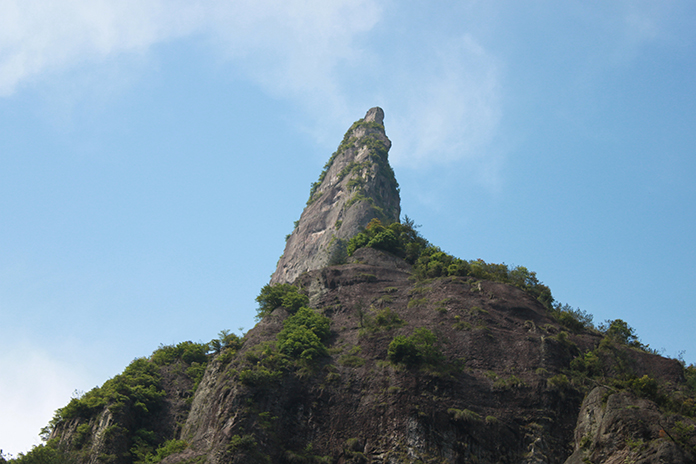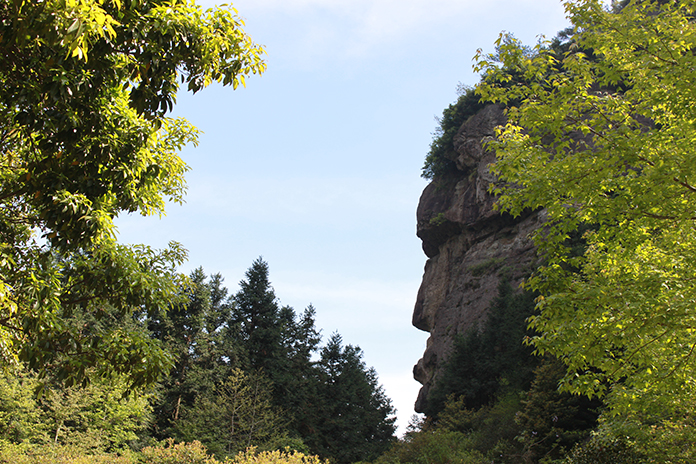 我們經(jīng)過“問仙橋”,走著那清涼的石子小路,來到“神筆畫天”面前,看呀,那座山的山坳里露出了一個(gè)毛筆頭,筆尖對著天空,漸漸飄來的白云,好像是它那杰出的作品。真不知是哪位神仙把那么珍貴的寶物丟在了神仙居這廣闊的土地上。