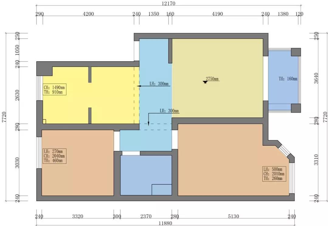 ▲90方框架戶型結(jié)構(gòu),改動不多