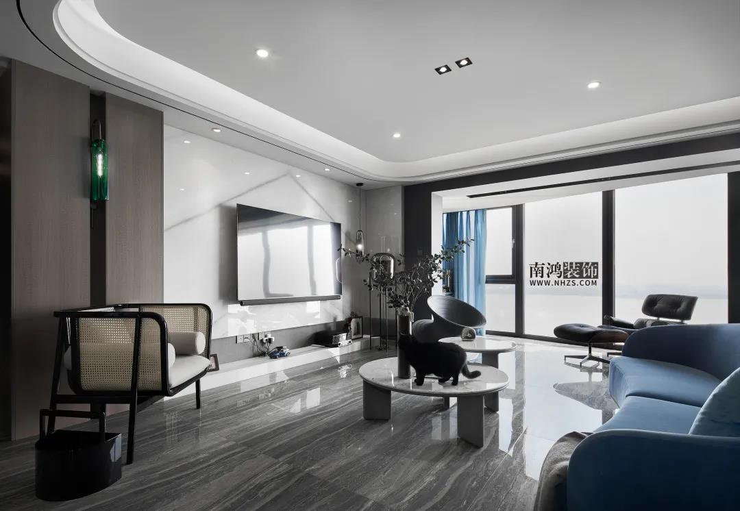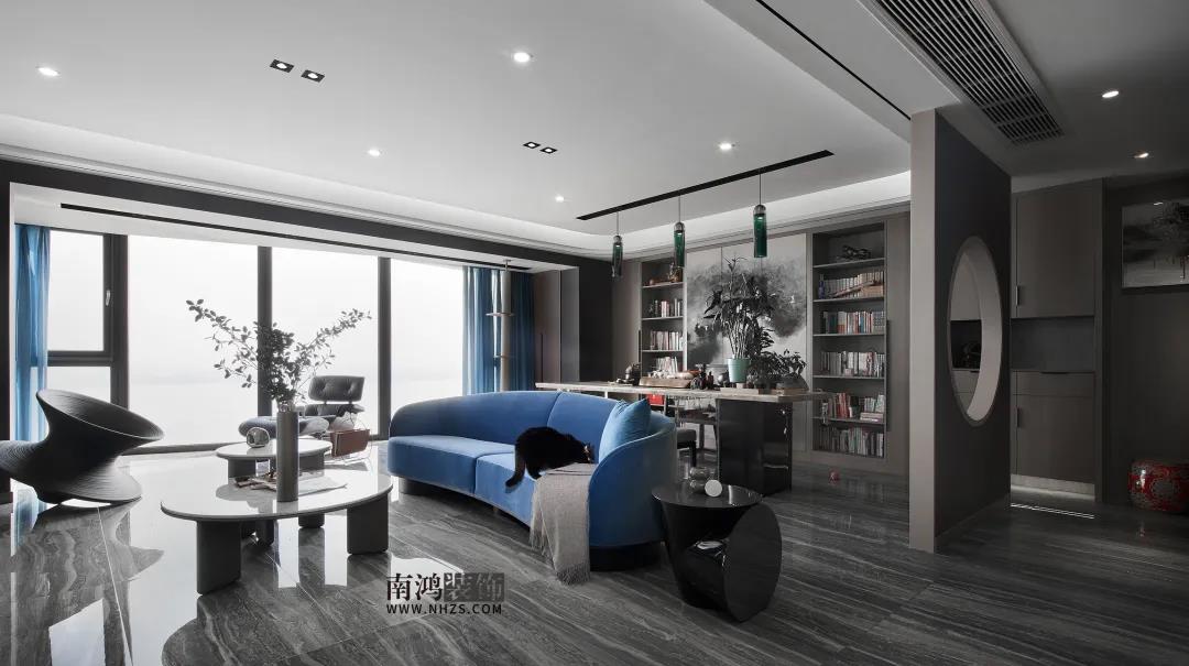 地址 / 觀瀾時代 戶型 / 三室兩廳 面積 / 190㎡ 風格 / 現代中式 設計施工 / 浙江南鴻裝飾 幸福的家庭總是相似的, 但幸福的定義, 對每個人來說或許都不盡相同。 對本案的女屋主來說, 窗外是海天一線的絕色風景, 窗內是三只愛貓的追逐嬉戲, 閑來品茶凝思,翻卷細讀, 就這樣把日子過成了一首詩。 本案結合現代風的輕奢時尚與中式風的古典雅致,色彩搭配上也不落俗套,整體取用冷硬中性色的基礎上,各個空間都加入了許多個性色彩,層次感非常強! 戶 型 圖 ▲原始戶型圖 ▲平面設計圖 設計說明: ①餐廚之間新建墻體,增加儲藏室的空間; ②客廳包進陽臺做落地窗,將房子的景觀優(yōu)勢發(fā)揮到最大; ③公區(qū)域通往臥室的內廳過道整體往南移,主臥釋放一部分面積留給客房,平衡主客房的空間大小。 玄 關 Entrance 原戶型中并沒有玄關區(qū)域,我們在茶室旁砌筑了這道168cm*235cm的墻體,以中式常見的借景手法打造門廳,并將茶室區(qū)的柜子延伸過來作玄關柜使用。 客 廳 Living Room 一氣連江色,寥寥萬古清。客廳將陽臺包進做落地窗,再加一把面料舒適的躺椅,每日觀覽著江波浩渺,俗世的煩擾轉瞬就能被驅散得干干凈凈。 湖水藍的弧形沙發(fā),橡木大理石結合的茶幾,黑色烤漆角幾,陀螺椅......客廳內各色材質多樣、姿態(tài)各異的家具被有序排列著,再加上綠植點綴,空間在干練精致之余,更顯出生機勃勃的氣息來。 沙發(fā)背后便是因女主人愛好而特意設置的休閑茶室區(qū)了,背景的藝術壁畫烘托雅致氛圍,兩側書柜用來收納主人心愛的藏書,靠近陽臺的地方還做了貓爬架,喵主子們當然也不能怠慢啦~ 餐 廳 Dining Room 餐廳做島臺餐桌一體式設計,實用性和使用感都很好,黑白搭配帶來明凈的視感,自然的石材肌理配合空間情境,更顯素雅沉靜。 廚 房 Kitchen 廚房,淺色模壓櫥柜門帶來輕盈、舒緩的視覺體驗,黑色把手干凈利落,頂部做白色集成吊頂,空間更加明亮。 廚房靠近餐廳的地方延伸出去做了一塊西廚區(qū),吧臺搭配高腳凳,閑時品一杯紅酒,嘗一嘗親手做的糕點,別有一番情趣。 臥 室 Bedroom 芥末黃提供主臥進門的第一視感,帶來鮮活的生命力,也是主人對美好生活的積極期許。 主臥真是滿滿的女王氣質!宮廷色鋪底,背景墻結合浮雕質感的凹凸藝術硬包,個性特質拉滿,窗邊設置獨立浴缸,品質生活更上一層樓。 融合多種材質元素,以現代風格的利落表現結合中式古典的優(yōu)雅個性,成就別具一格的氛圍感。 黑色鐵藝百葉窗搭配黑白花磚,陽光從間隙里參與進來,空間里點滴都是時光流淌歲月如歌的美好記憶。 床尾的梳妝空間,奶黃色背景搭配梅紅的矮凳和水藍色梳妝臺,飽滿的色彩極具張揚個性。 客房,淺青色背景結合藤編材質,營造清朗舒適的睡眠環(huán)境,宛若美好的早春時節(jié)。 衛(wèi) 生 間 Toilet 衛(wèi)生間墻地面由石紋瓷磚鋪就,深淺不一的灰色打造層次感,整體空間明亮,現代感強烈。