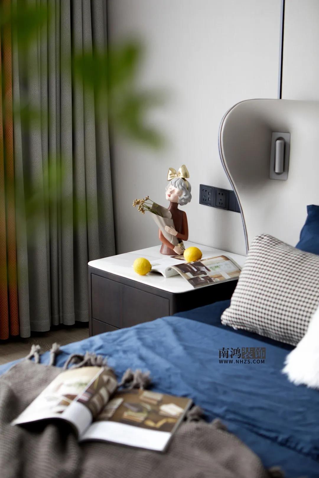 01. 客戶需求 本案的男業(yè)主是名律師精英,對(duì)待工作對(duì)待生活皆是嚴(yán)謹(jǐn)認(rèn)真、一絲不茍,對(duì)家的期待是簡約時(shí)尚,女業(yè)主作為家庭主婦,則更注重儲(chǔ)物空間一些。 02. 裝飾亮點(diǎn) 本案以石材,木飾面,巖板,不銹鋼等為主要用材建構(gòu)輕奢外形,色彩上,在簡潔自在的白、木色基礎(chǔ)上,添加橙、黃、紫、藍(lán)等個(gè)性顏色,達(dá)到亮眼卻并不突兀的平衡。 03. 戶型分析 女業(yè)主對(duì)收納要求很高,而且家有二胎,因此設(shè)計(jì)師在原有戶型結(jié)構(gòu)的基礎(chǔ)上增加了非常多的儲(chǔ)物空間,主臥有兩個(gè)大型衣帽間,南陽臺(tái)利用轉(zhuǎn)角區(qū)域增加雜物間,另外兩間次臥也相應(yīng)做好了收納儲(chǔ)備。 04. 設(shè)計(jì)落地 玄關(guān),以簡潔有序的布置打造開闊大氣之感。端景臺(tái)上擺放金框裝飾畫,小馬擺件與清新花束,構(gòu)成藝術(shù)雅觀。左側(cè)玄關(guān)柜滿足基本收納,隱形門背后即是次臥空間。 玄關(guān)轉(zhuǎn)進(jìn)來是劃分客餐廳的走廊,埡口墻面以木皮包裹,溫柔啟開家的全部面貌,又與入戶區(qū)形成呼應(yīng),保證了空間的整體感。 客廳以白灰色為基調(diào)展現(xiàn)低調(diào)輕奢氛圍感,輔以鮮活的愛馬仕橙點(diǎn)綴,明朗干凈之余更顯前衛(wèi)氣息。 沙發(fā)背景墻用淺色木飾面結(jié)合墻布并以黑色金屬勾邊,界定區(qū)域的同時(shí)又有著很好的視覺延伸感。 頂面無主燈設(shè)計(jì),保持簡潔質(zhì)感。電視背景墻延伸出來做一塊黑色開放式收納區(qū)域,方便個(gè)性展示。 客廳望向餐廳。餐廳外口兩側(cè)擺放到頂?shù)碾p面玻璃門酒柜,除了做隱形隔斷之外,還可以改善空間采光。 餐廳整體現(xiàn)代感十足,墻面以大理石、木格柵、木飾面、裝飾畫等多種元素裝飾,豐富而立體。黑色金屬線條勾勒?qǐng)A形吊頂,空間更多一層高級(jí)感。 低調(diào)至簡的灰色系臥房中,點(diǎn)綴靜謐的深藍(lán)與活力的橙色,優(yōu)雅格調(diào)呼之欲出。床頭背景墻做了前后關(guān)系處理并暗藏?zé)魩В黾右曈X上的層次感。 設(shè)計(jì)的語言是神奇的,它賦予空間特有的情感。每一種顏色的搭配,每一件物品的取舍,都是我們對(duì)家、對(duì)人、對(duì)生活方式的理解與認(rèn)知。 次臥做榻榻米房,完善收納的同時(shí)提供書房與娛樂休閑室的功能,多種色彩碰撞,呈現(xiàn)趣味感十足的活力空間。 兒童房,以灰藍(lán)為主的整體色調(diào)更趨于穩(wěn)重,象征著父母對(duì)孩子未來成長的一種期待。可愛的抱枕、床頭擺件與木馬搖椅,為房間注入活潑童趣。 主衛(wèi),潔白石質(zhì)瓷磚帶來明凈觀感,雙臺(tái)盆提升日常使用效率,淋浴區(qū)地面做防滑處理,墻面設(shè)置壁龕方便收納。 次衛(wèi)干濕分離,內(nèi)里淋浴區(qū)墻面瓷磚做不規(guī)則切割,打造美觀度與實(shí)用性兼?zhèn)涞臅r(shí)尚衛(wèi)浴空間。
