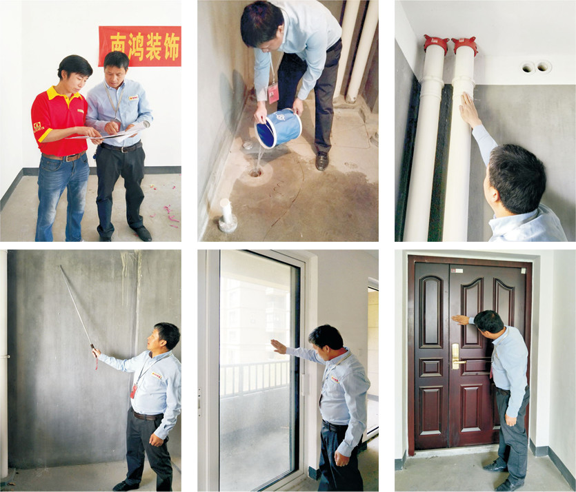 開工時客戶、項目經(jīng)理、設計師、工程監(jiān)理現(xiàn)場圖紙交接,檢查下水是否通暢,墻體、地面是否空鼓,下水管接口處是否滲漏,外墻是否滲水,進戶門、窗戶玻璃是否劃傷或破損,地面有無貫穿性裂縫和起砂,衛(wèi)生間、陽臺頂面是否有滲漏及樓層凈高是否誤差大。
