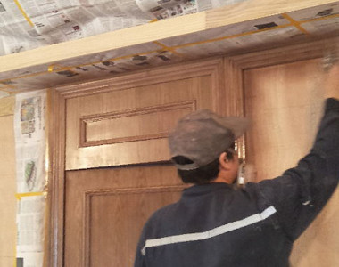 油漆材料進場,客戶確認,木漆面油漆封底施工,抗裂找平膩子找平,陰陽角